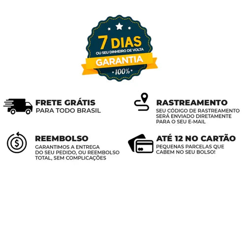 Garantia de 7 dias para troca, devolução e reembolso sem complicações.